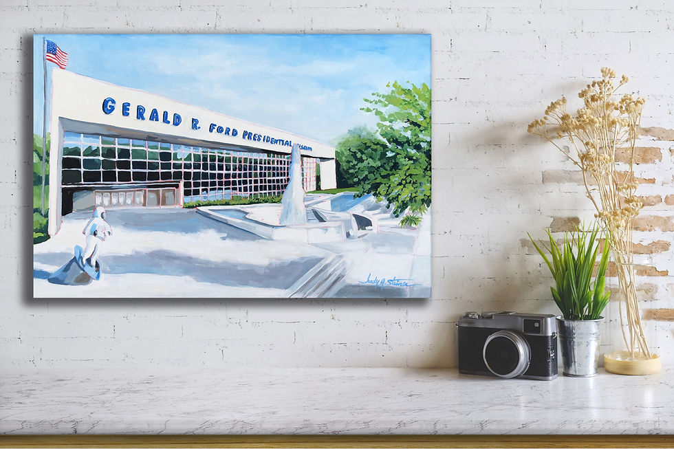 “My Grand Rapids” is a composite of 36 individual oil paintings of places in Grand Rapids, Michigan, that have meaning to me. Having lived in Grand Rapids most of my life, I have fond recollections of downtown. Not only do the buildings and sights bring back memories, I love the architecture. I enjoyed painting all the colors, textures and interesting adornments of the structures and surrounding environments. To encourage participation with my piece and ArtPrize, I have made coloring books of the drawings in "My Grand Rapids".